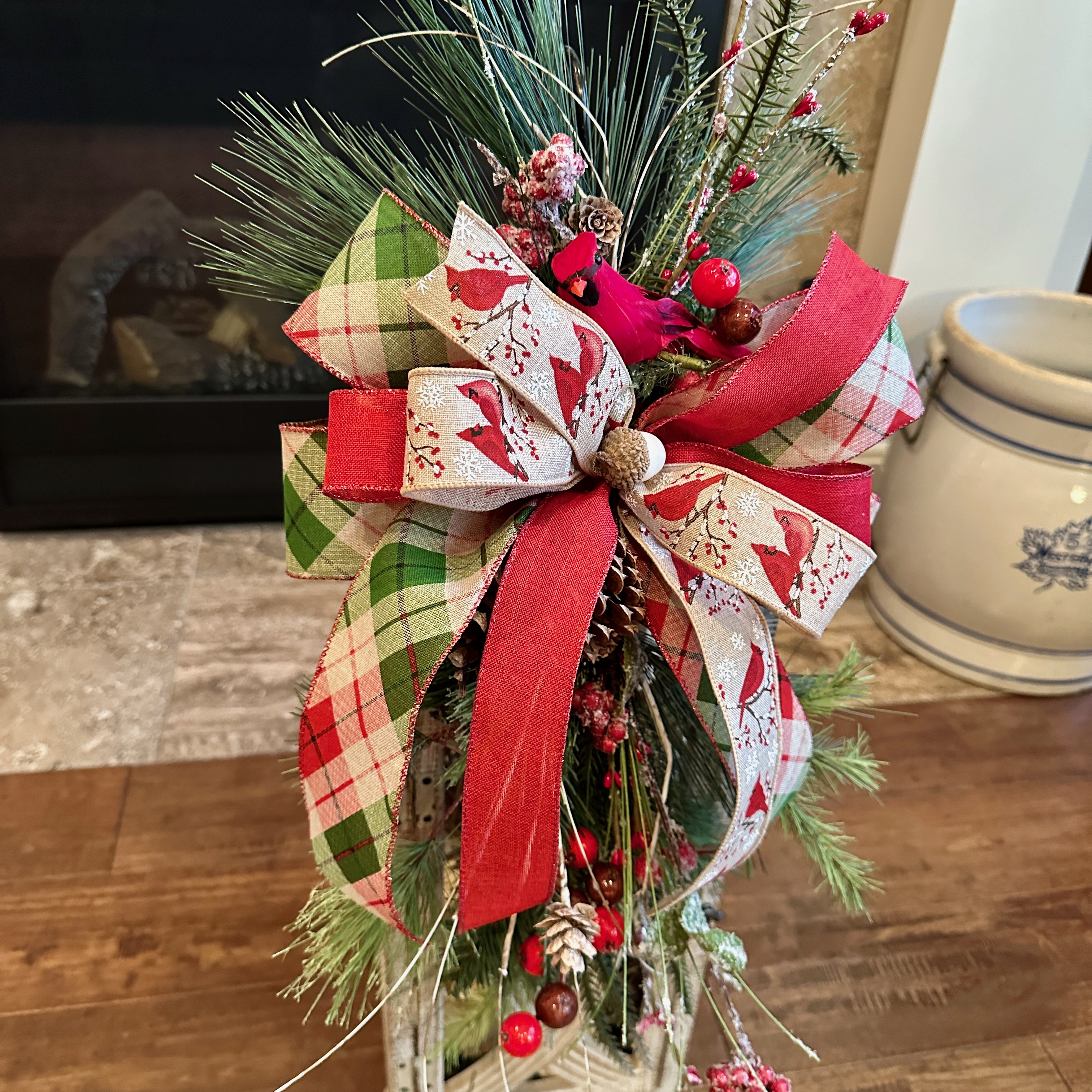 Small cardinal sits atop the swag.