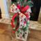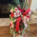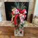Large bow with three (3) wired ribbons tie together this holiday floral lantern swag arrangement