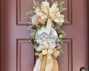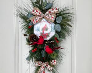 Rustic Buffalo Plaid Christmas Door Swag Wreath with Birdhouse