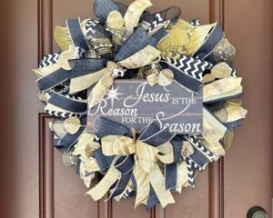 Jesus is the Reason Religious Christmas Wreath in navy, gold ...