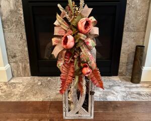 Fall Floral Lantern Swag, Cabbage Roses Lantern Topper, Autum...