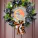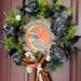 Welcome the spooky season in style with this enchanting designer black and white Happy Halloween floral wreath.
