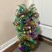 Perfect for celebrating the Carnival season, this colorful large lantern swag features a variety of rich purple, gold, and green ribbons accented with glittering ornaments and a decorative mask.