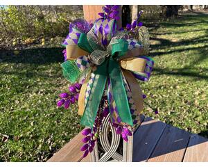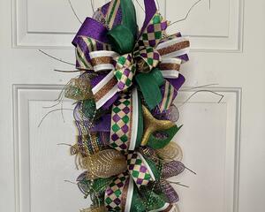 Mardi Gras Door Swag with Harlequin Ribbon and Glittered Mask