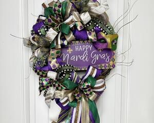 Mardi Gras Carnival Wreath with Mask and large Bows for Front...