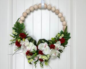 Minimalist Wood Bead Orchid Floral Hoop Wreath