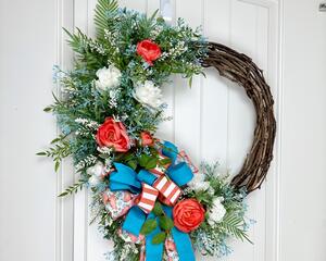 Large Summer Floral Peony Grapevine Wreath Front Door