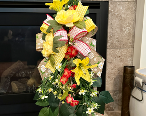 Large Summer Lantern Swag, Yellow Red Fireplace Lantern Bow T...