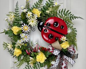 Large Summer Ladybug Door Wreath, Summer Welcome Floral Wreat...