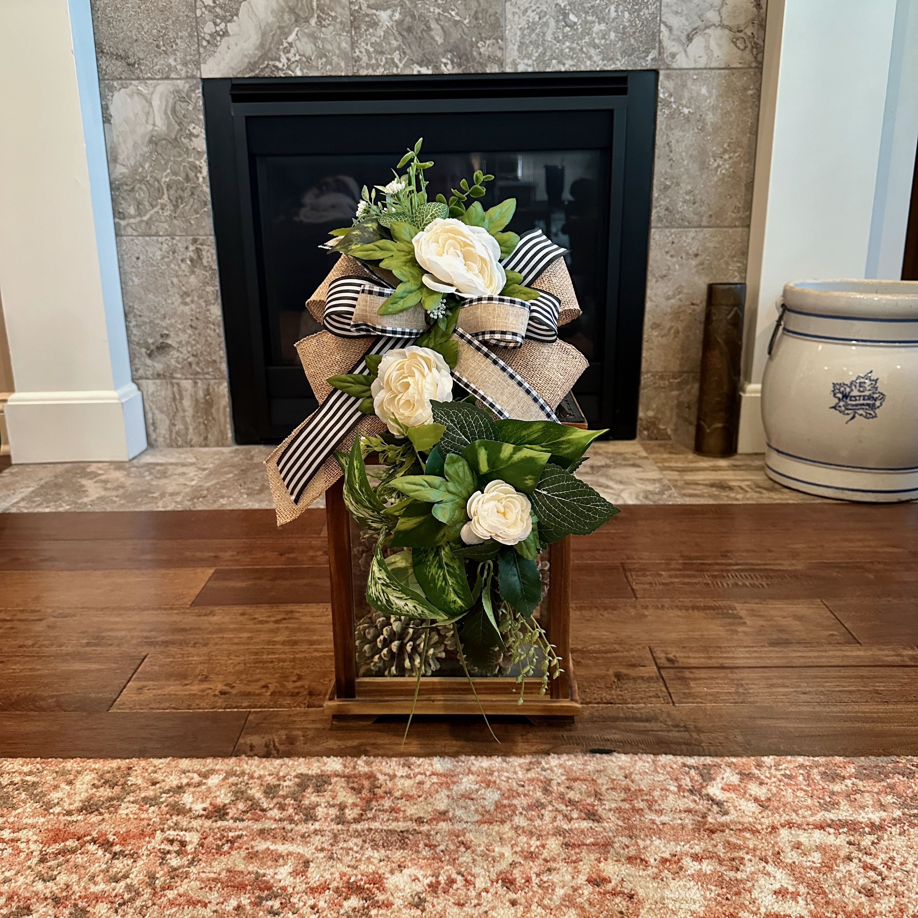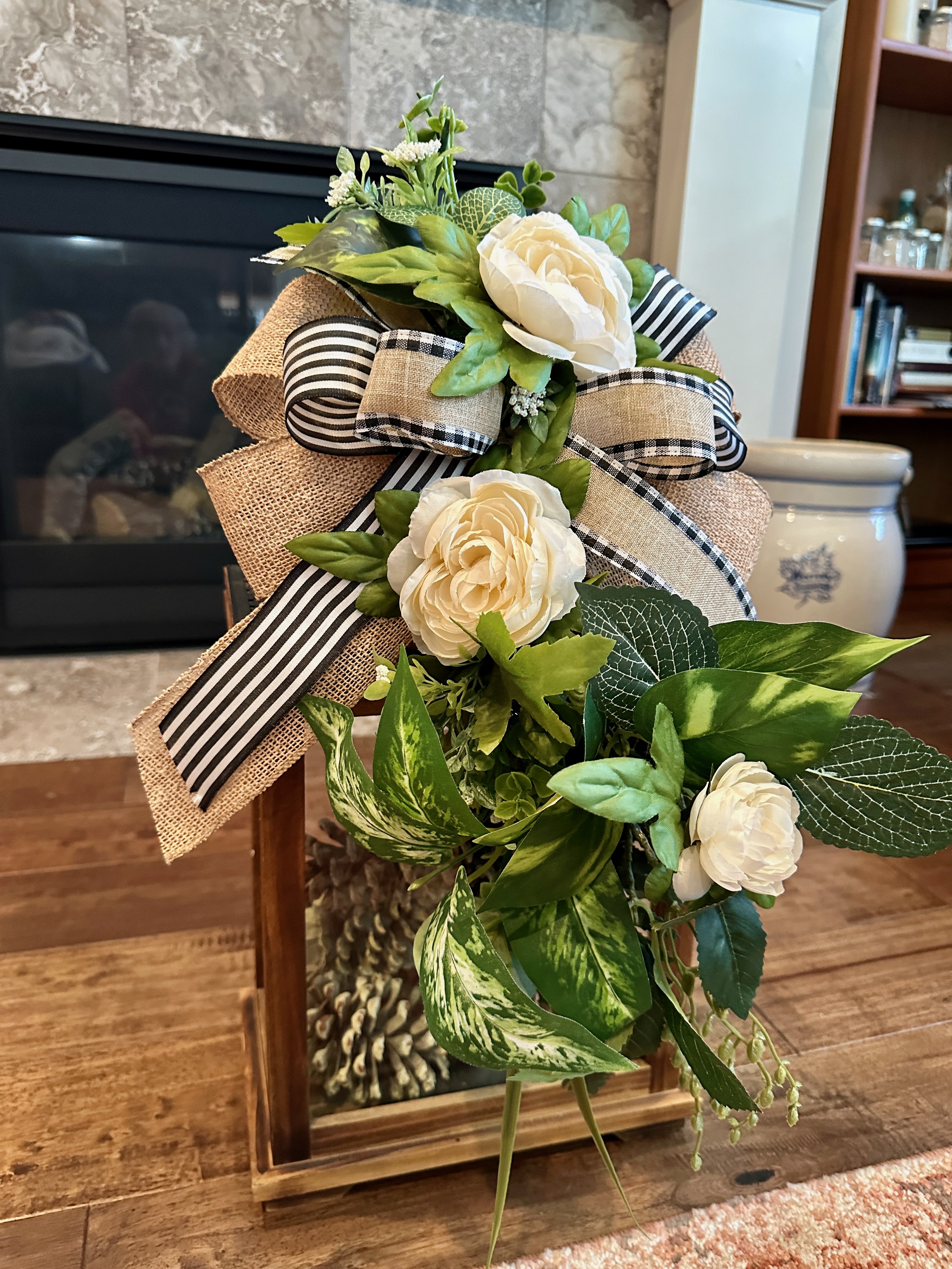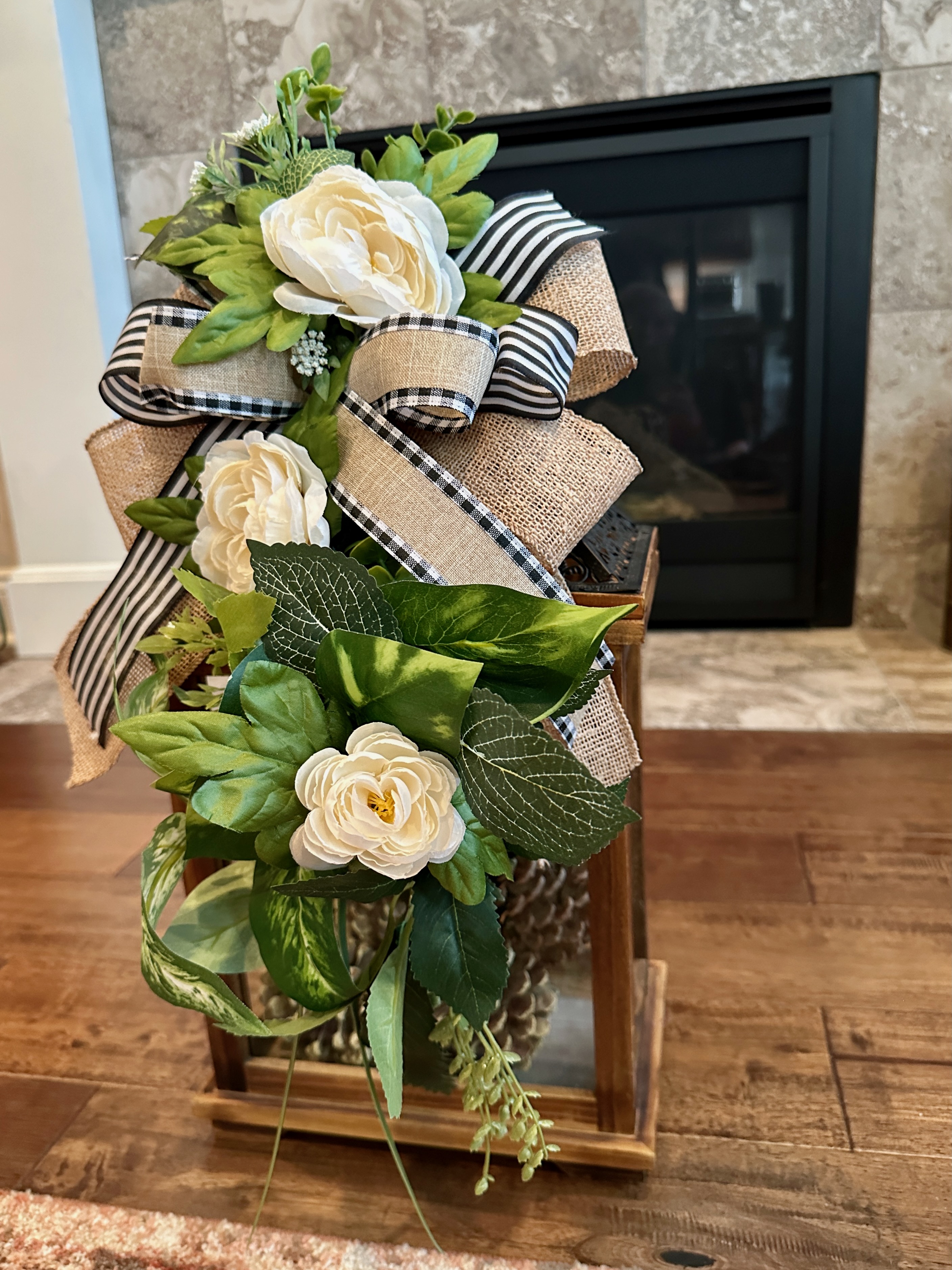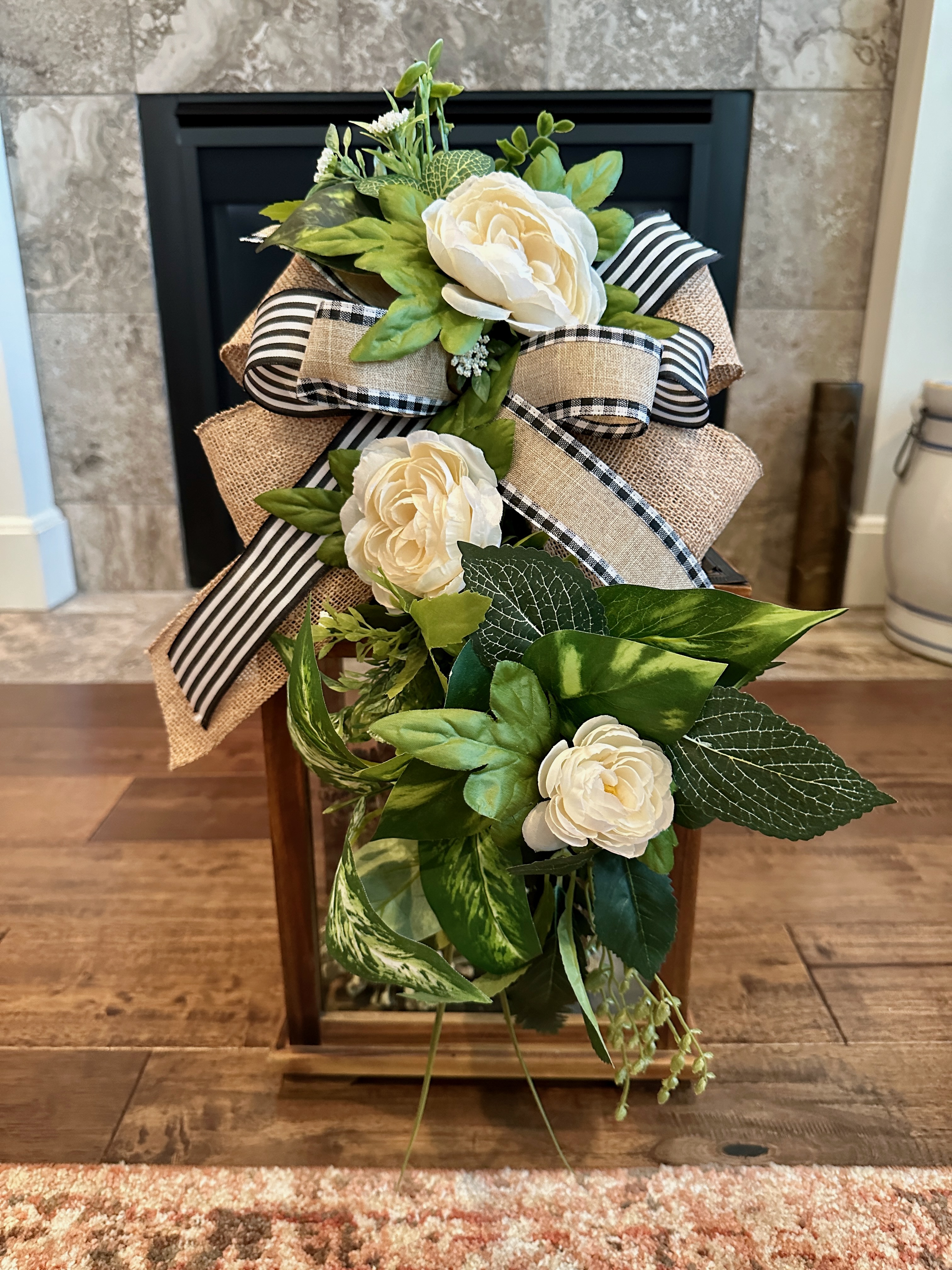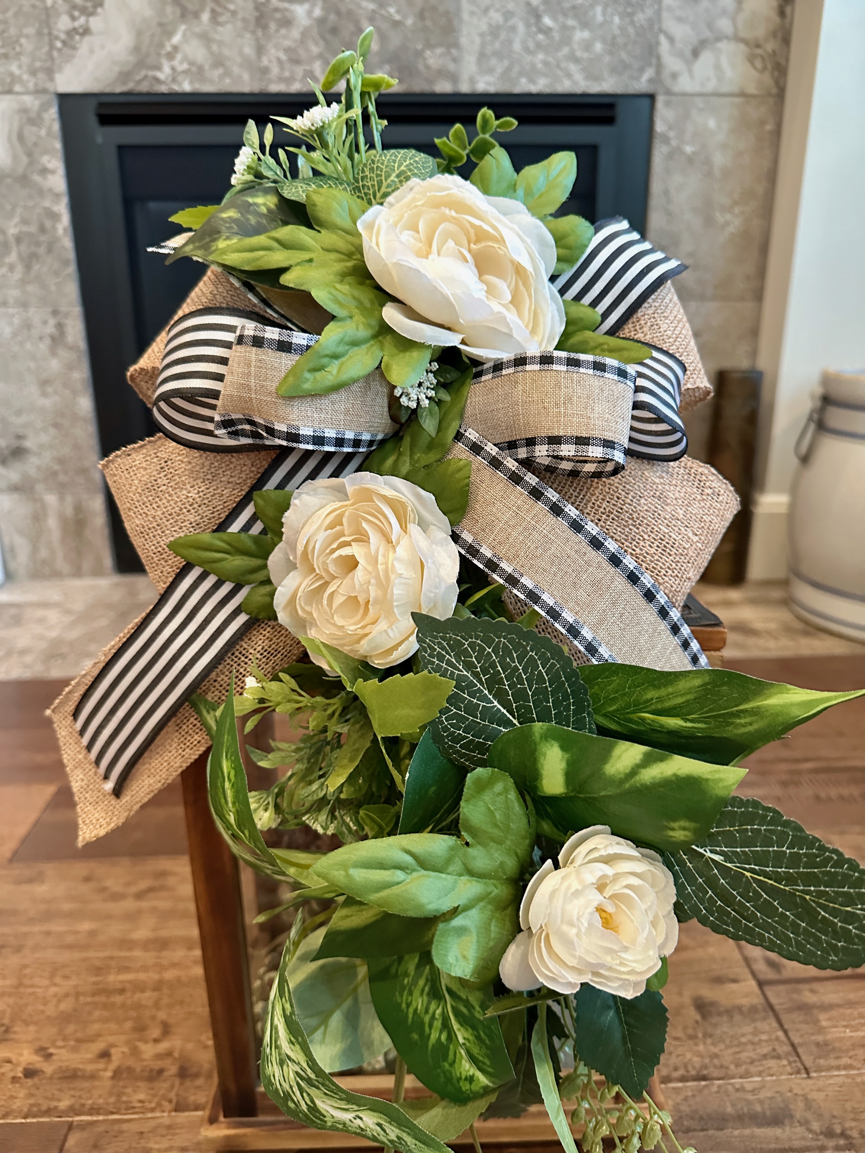 If you are looking for a year round, everyday lantern decoration, this neutral-color floral swag with cream ranunculus flowers will be a perfect addition to your home decor!