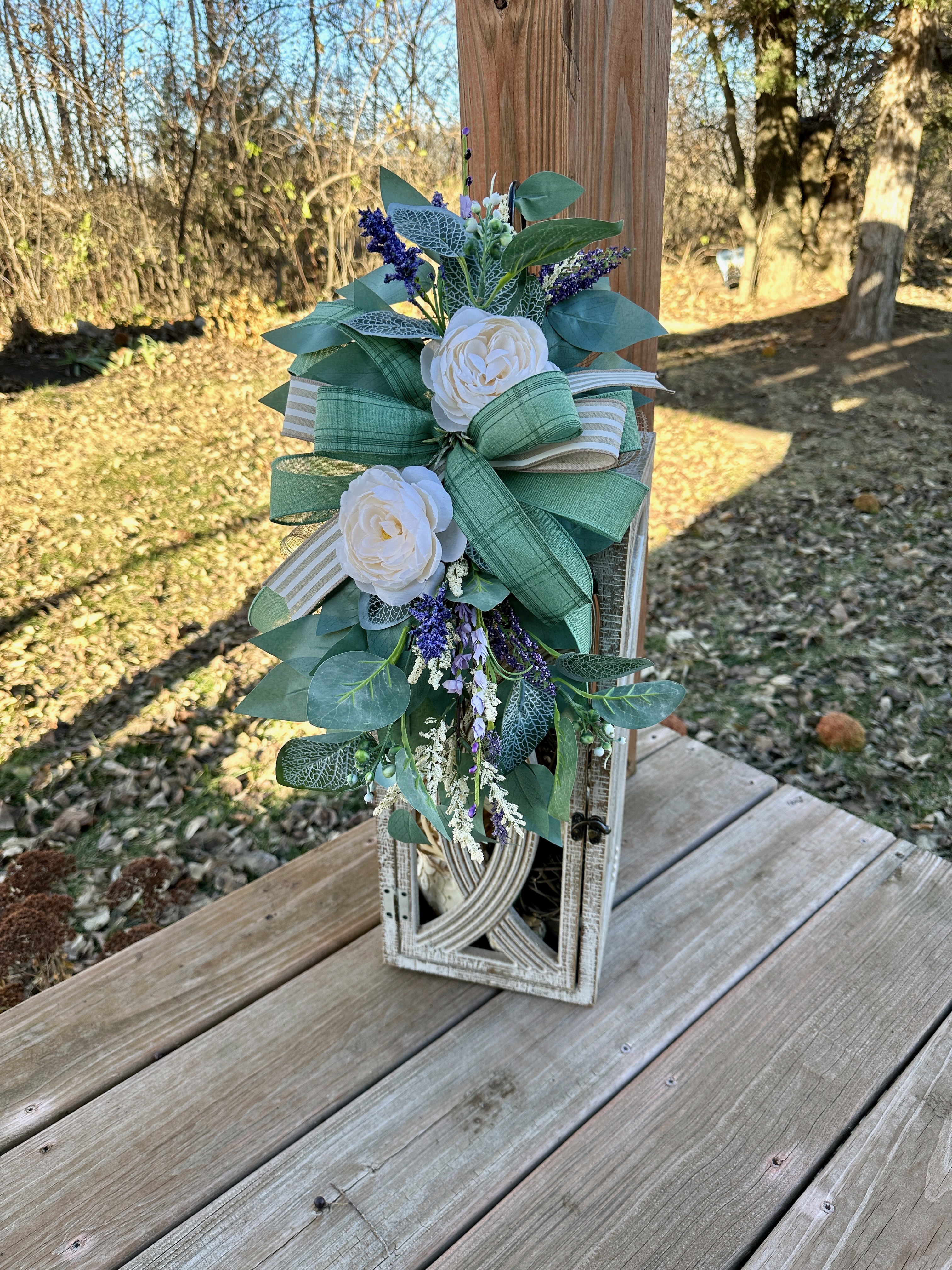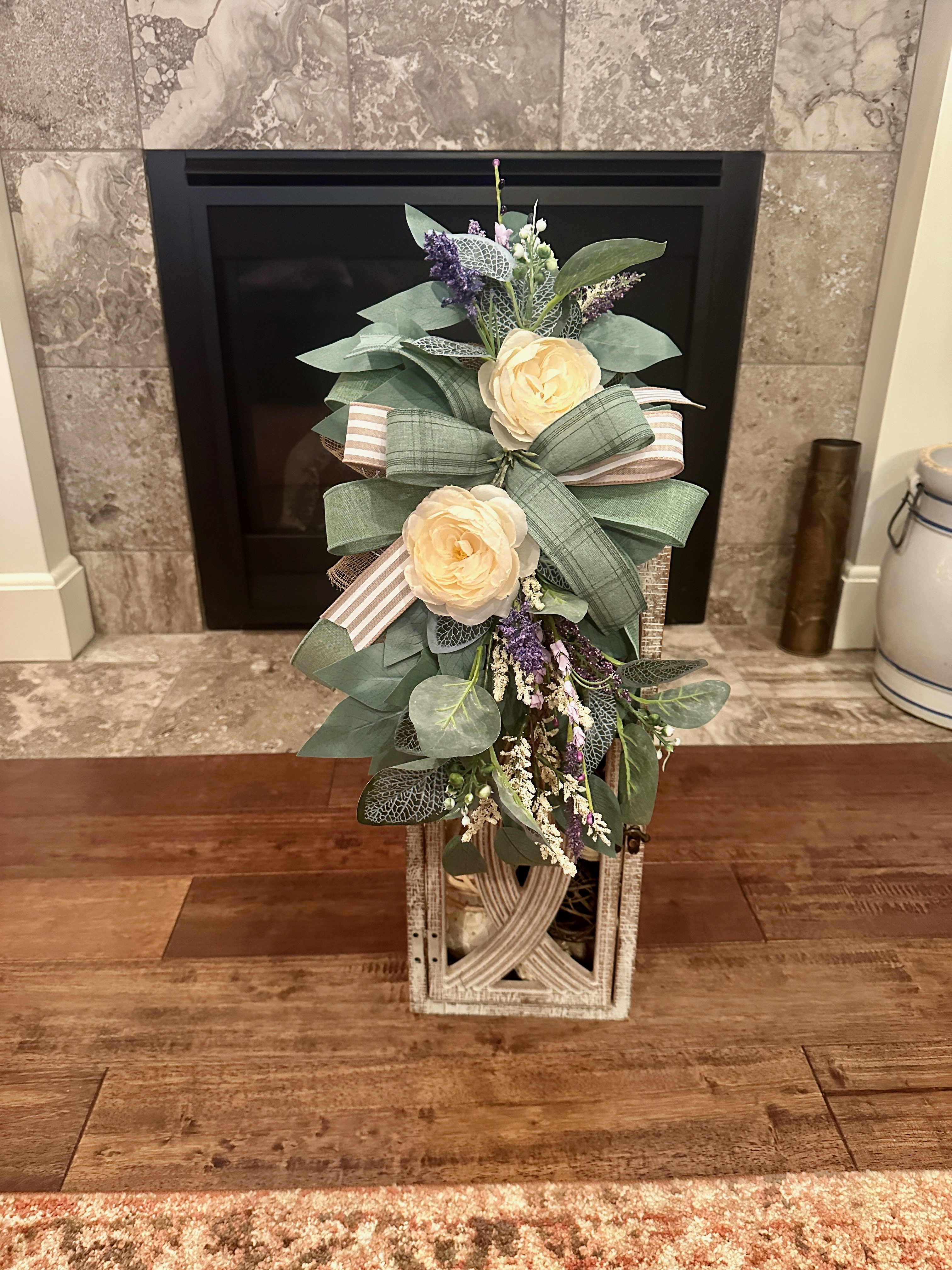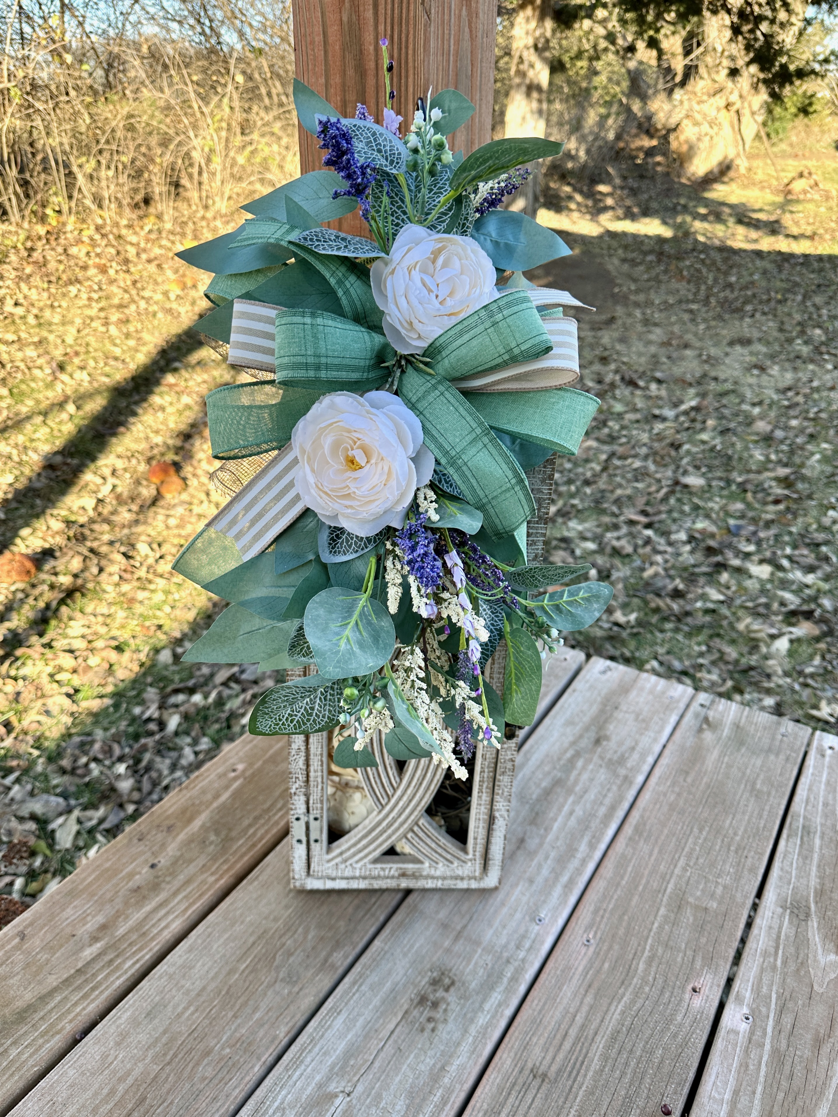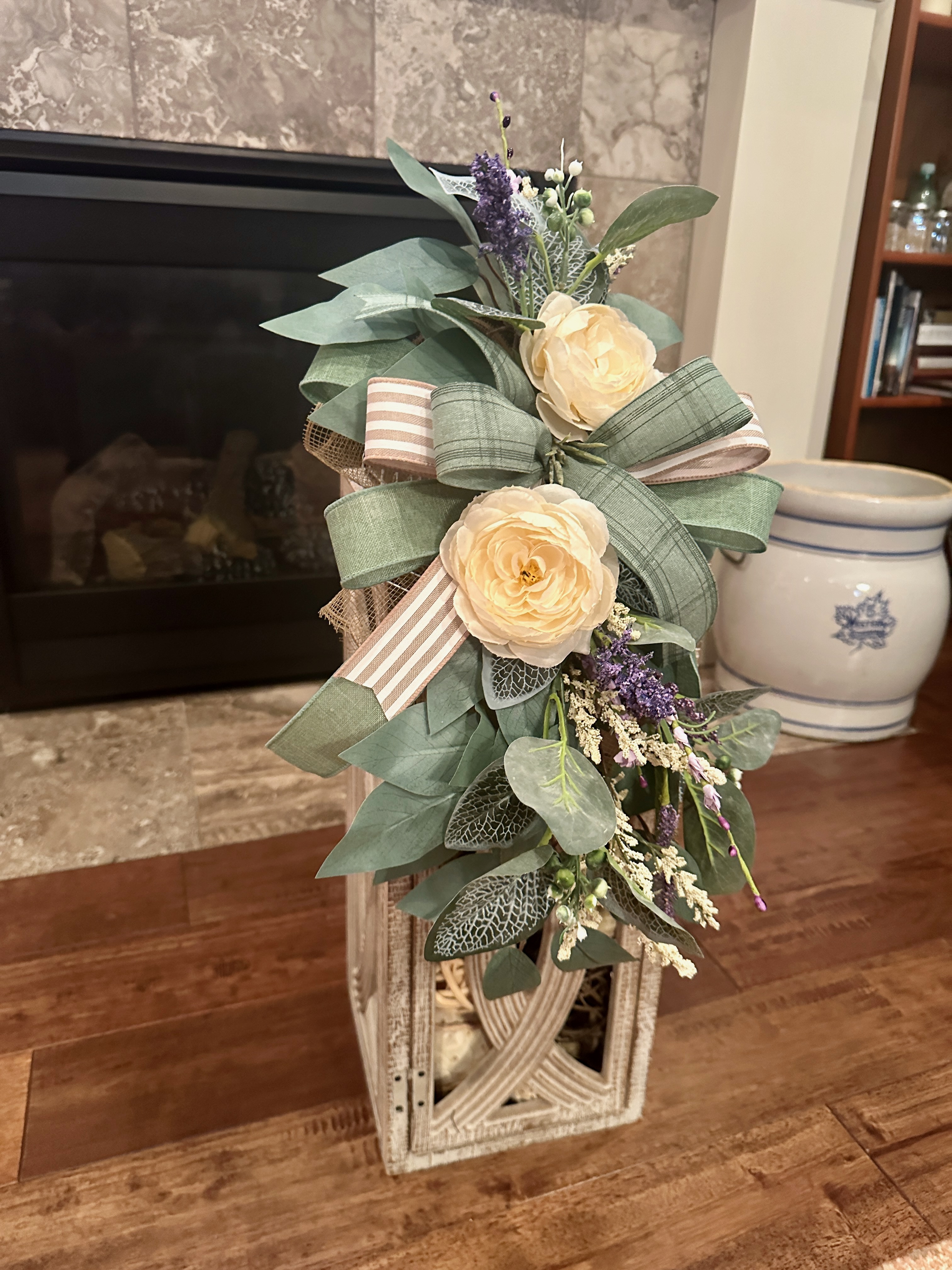 ~ Shown here in photos on a tall wooden lantern that is 24"x6"x6" (LANTERN NOT INCLUDED). This swag will be a lovely fit for 20"-30" tall lanterns, depending on your personal preference for length of florals cascading down the lantern.
