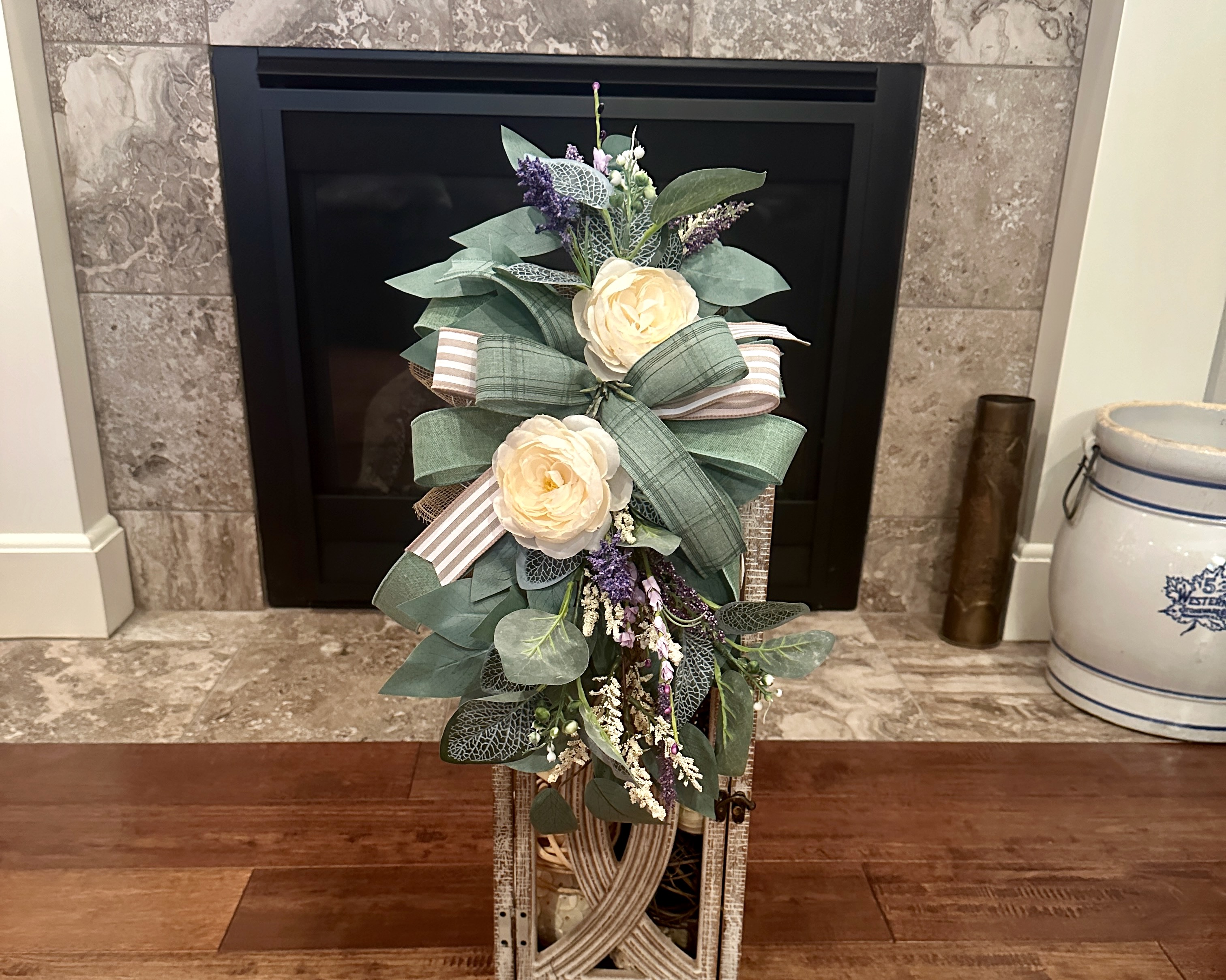 If you are looking for designer year round or everyday decor, this floral lantern swag in subtle sage green and beige will be a perfect addition to your home!